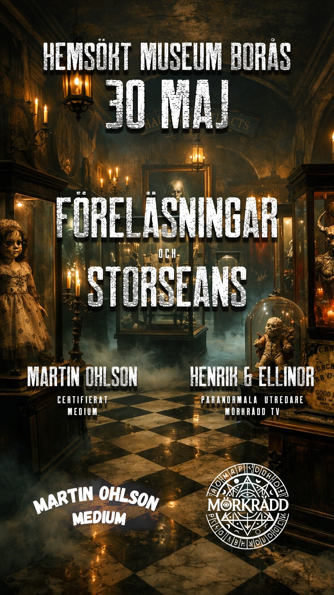 Upplev en kväll där gränsen mellan vår värld och andevärlden känns extra tunn – välkommen till Andlig vägledning och Storseans med ***Martin Ohlson Medium*** & MÖRKRÄDD TV på Laxtons hemsökta museum.